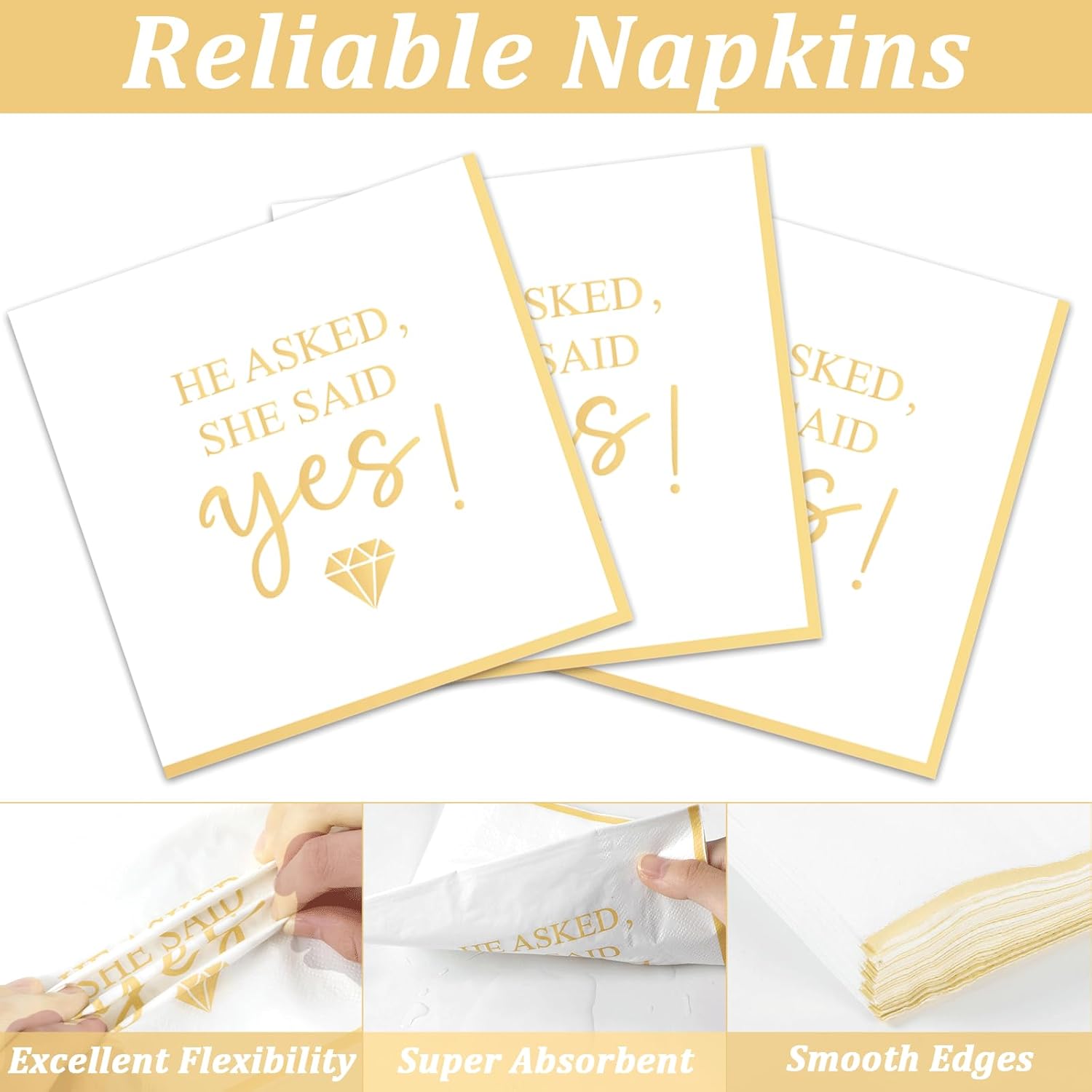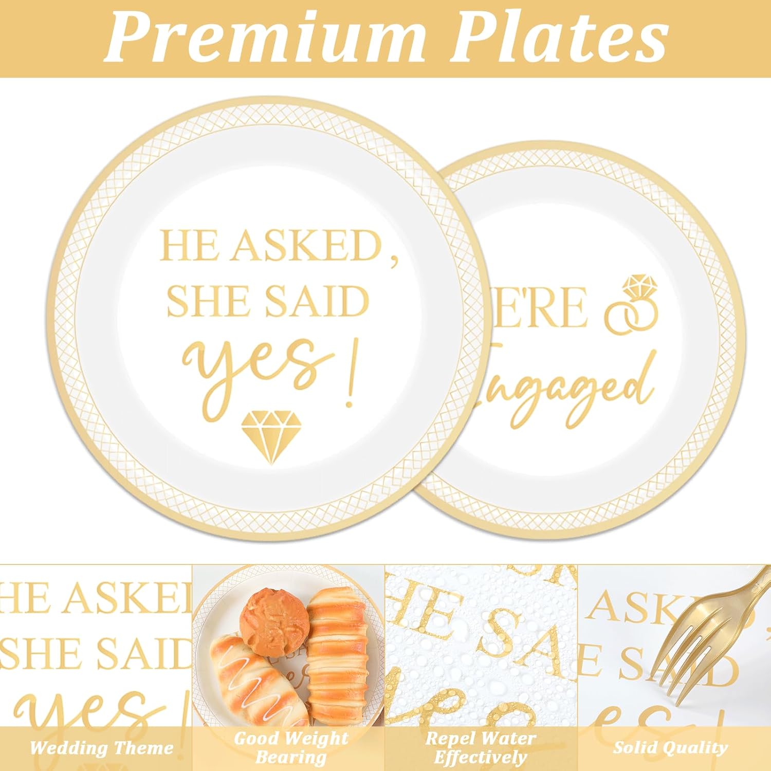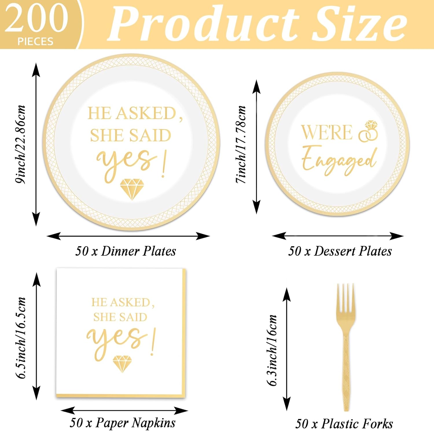 Elevate your engagement celebration with this stunning 200Pcs Happy Engagement Party Supplies set. Perfect for weddings, bridal showers, and special occasions, this collection brings charm and elegance to every detail of your event. The unique 'She Said Yes' and 'He Asked' design adds a romantic touch, making it an ideal choice for those who want to create a memorable experience for their loved ones.