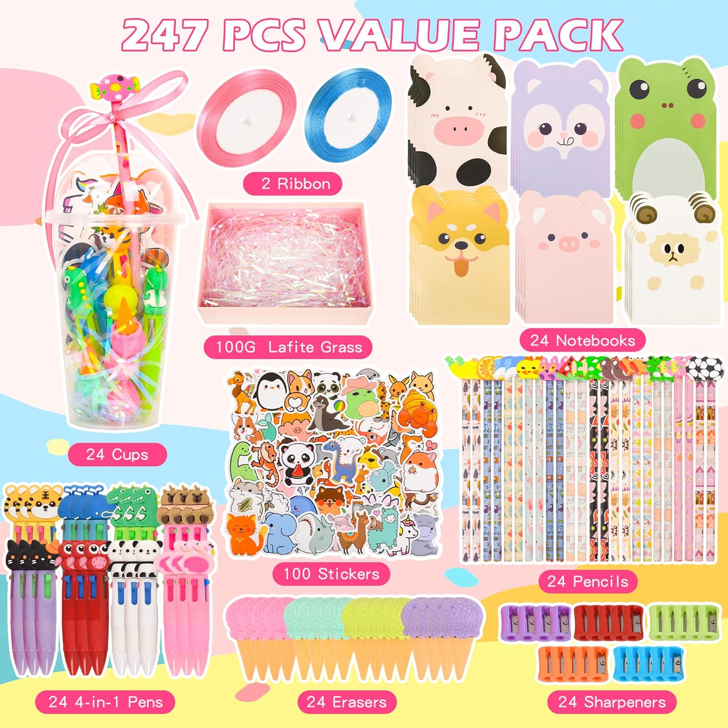 Get ready to make every celebration special with this vibrant and practical birthday return gift set. Packed with 247 pieces, it's a versatile collection of stationery that brings joy, creativity, and fun to any occasion.