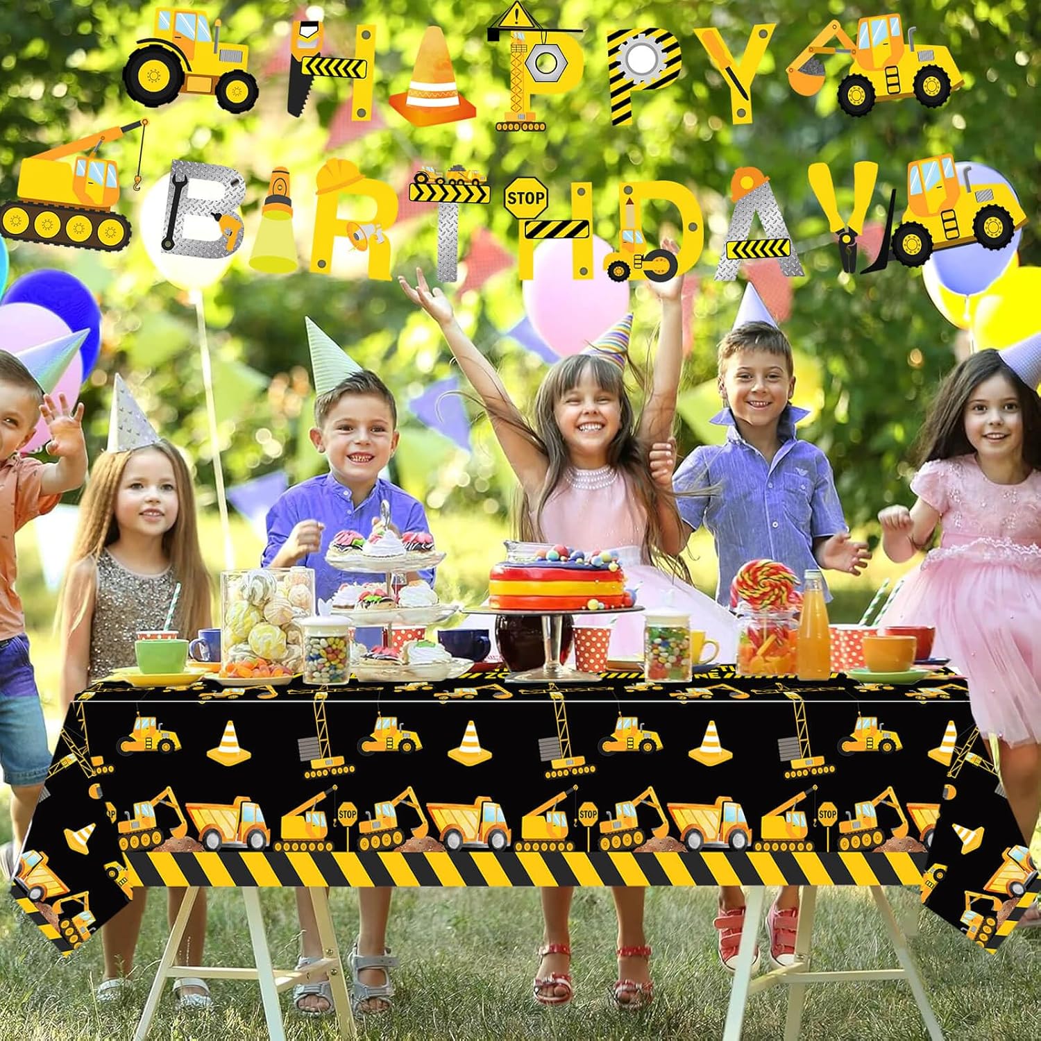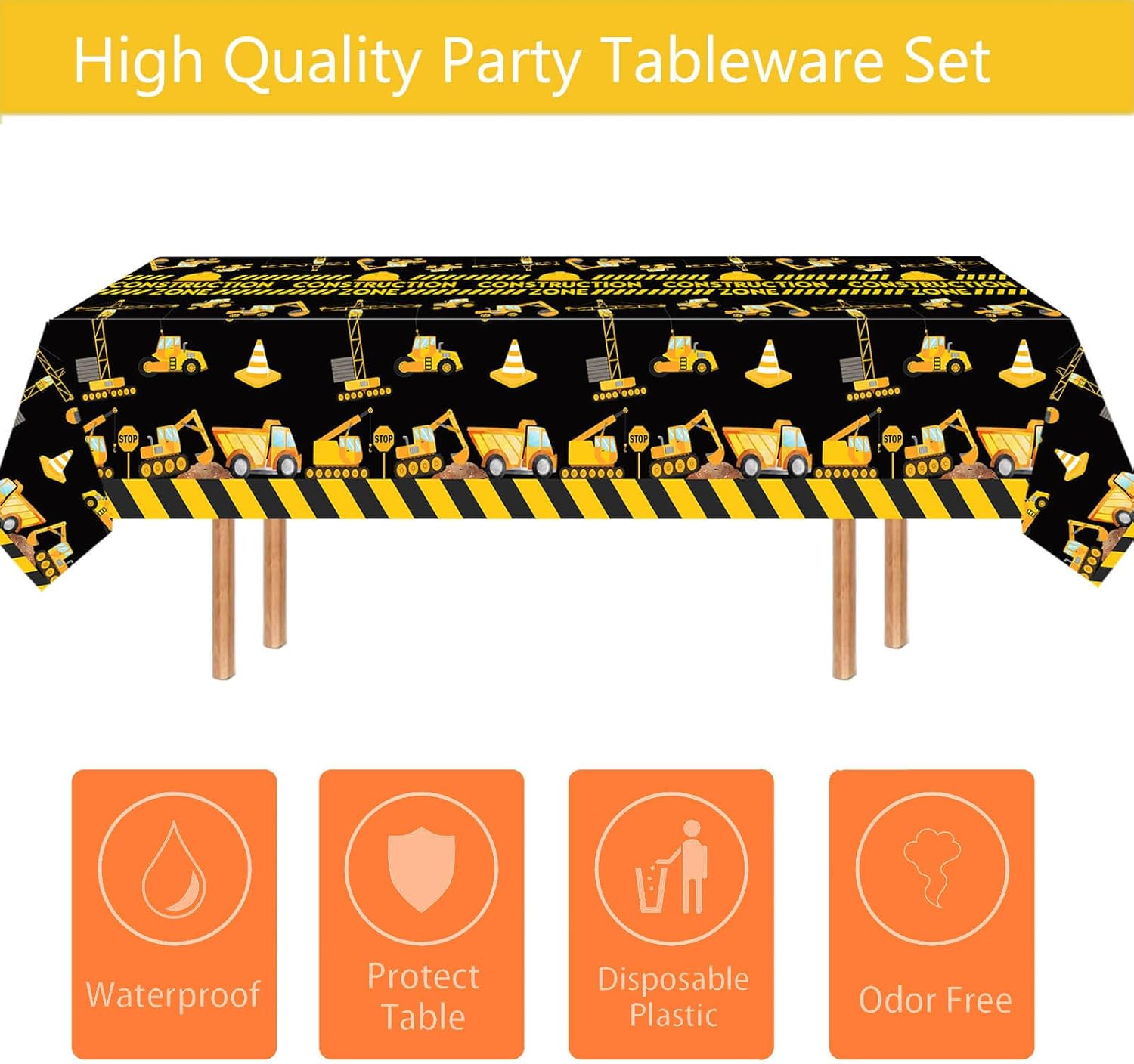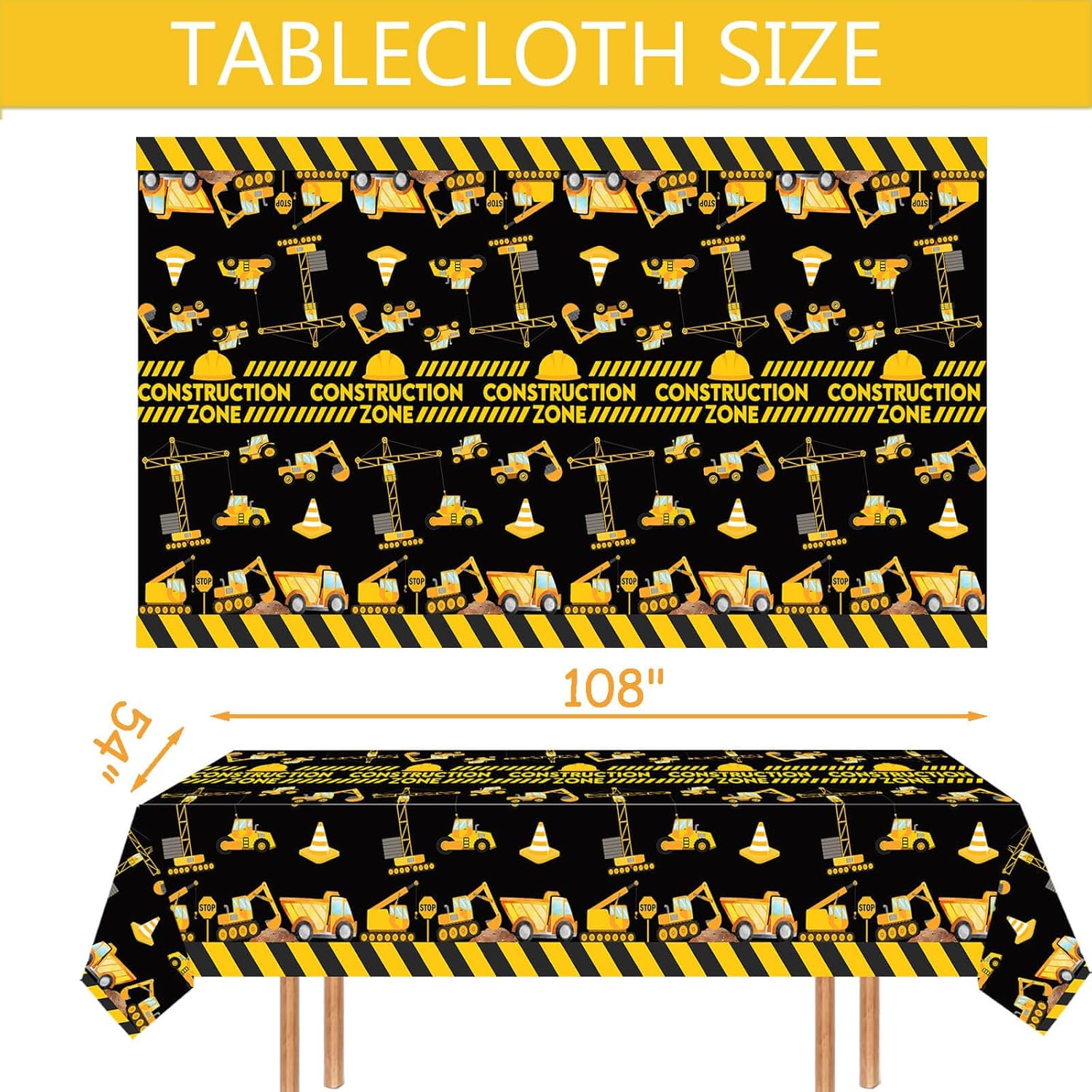 Elevate your next construction-themed event with these 3-piece table cloths. The bold dump truck design brings energy and charm to any gathering, making it a favorite for boys' birthday parties and baby showers. These table covers are crafted from durable, waterproof PE material that ensures they withstand spills and wear, while also being easy to clean and maintain. The 54x108 inch size fits most tables perfectly, giving you a spacious yet manageable decor option. Plus, their foldable design makes storage and transportation effortless, so you can always keep them ready for the next big occasion.