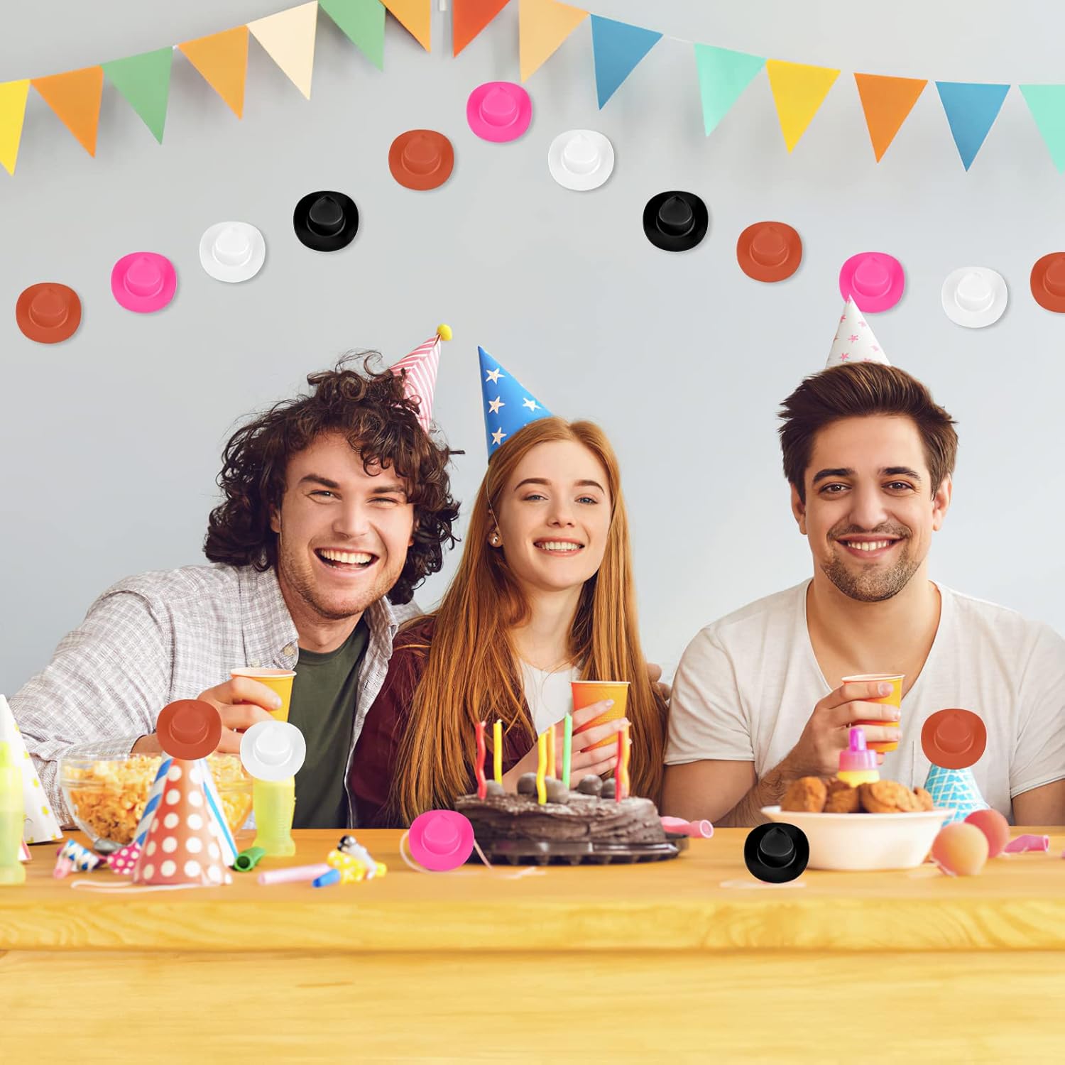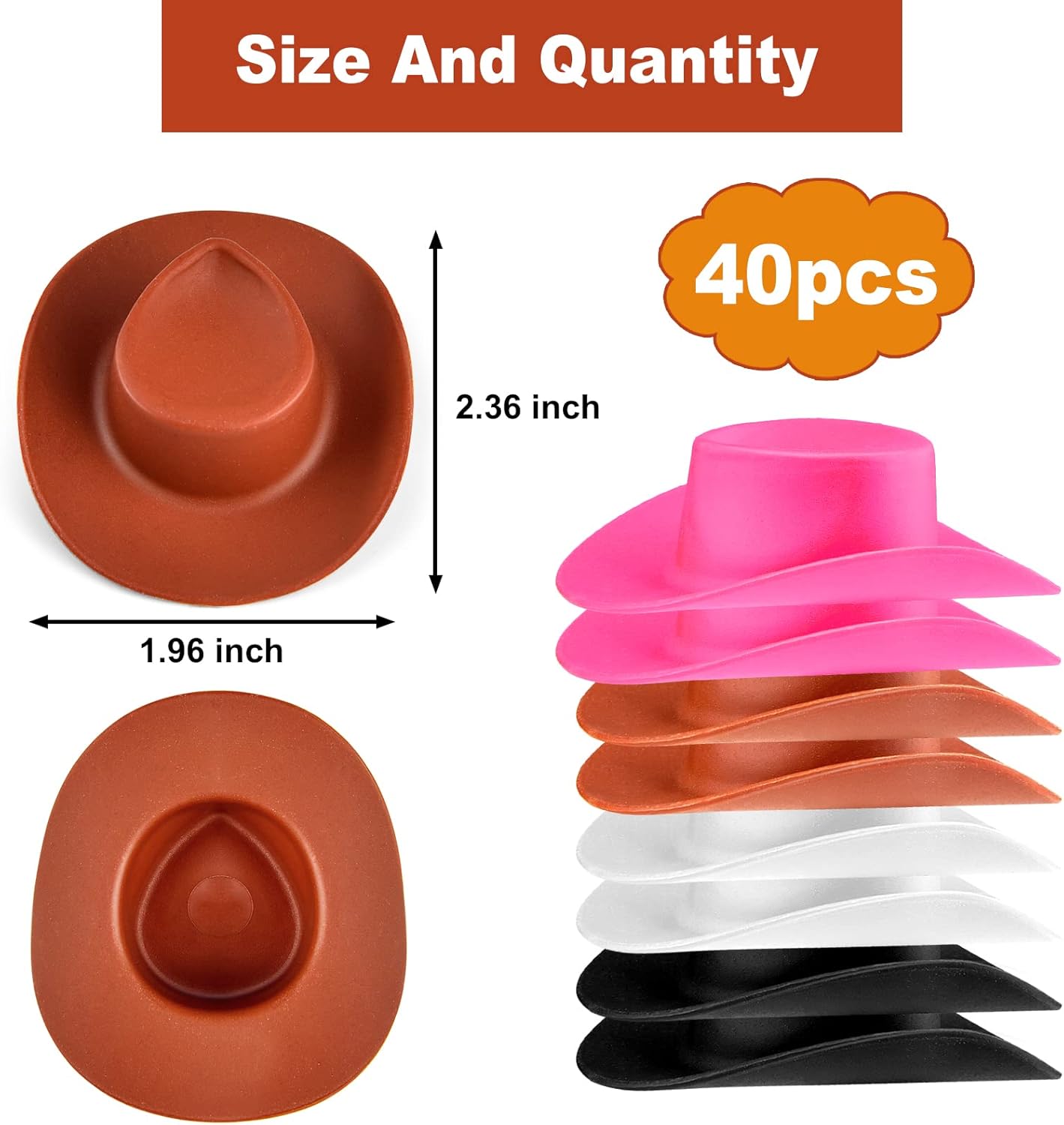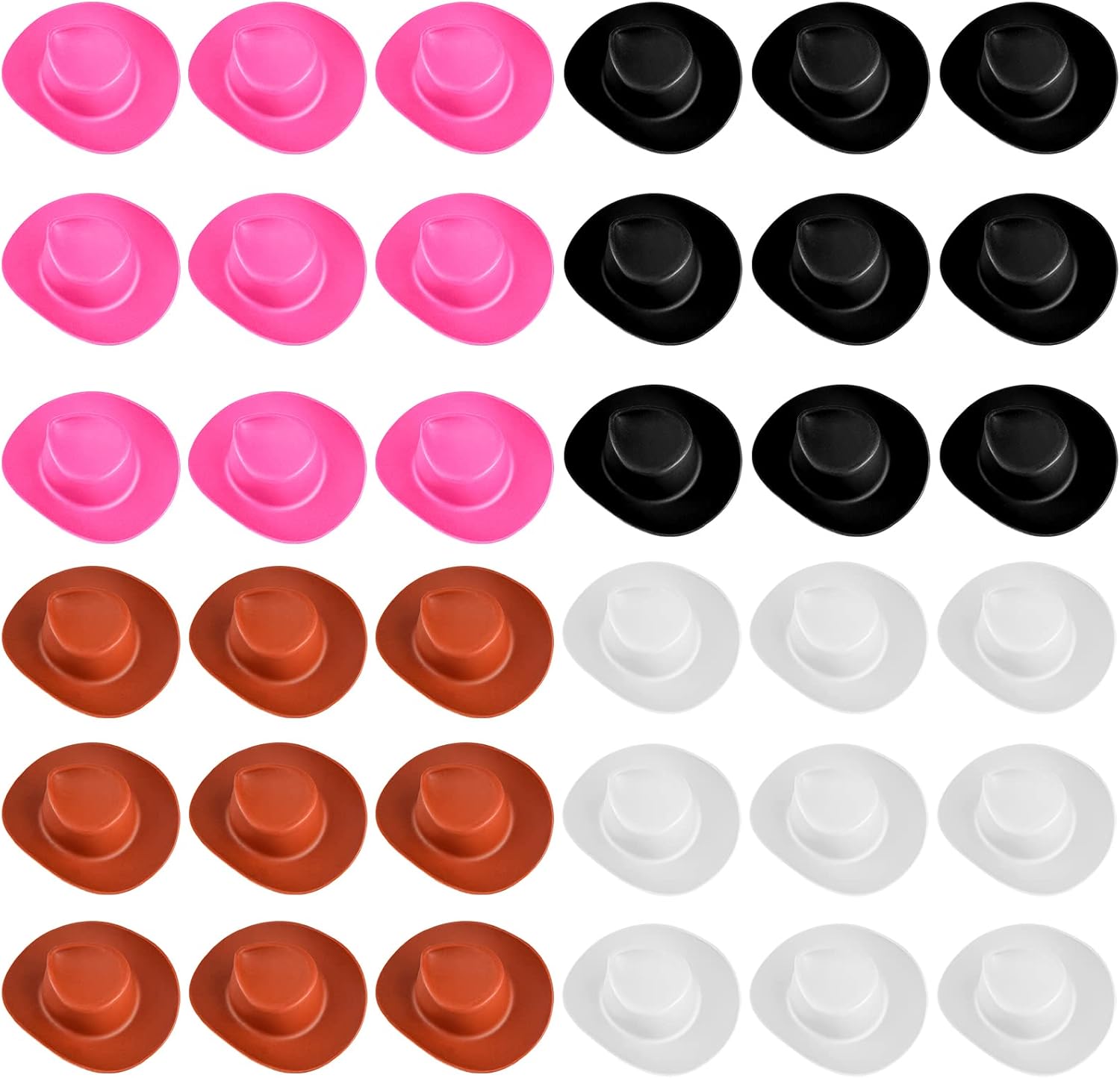 Elevate your dollhouse or creative space with these 40 piece plastic mini western cowboy hats. Designed with precision, they match the exact proportions of real cowboy hats, ensuring they look just right on your dolls, pets, or as part of a festive display. Available in four eye-catching colorsâpink, brown, white, and blackâeach with 10 units, these hats offer endless styling possibilities to bring your projects to life.