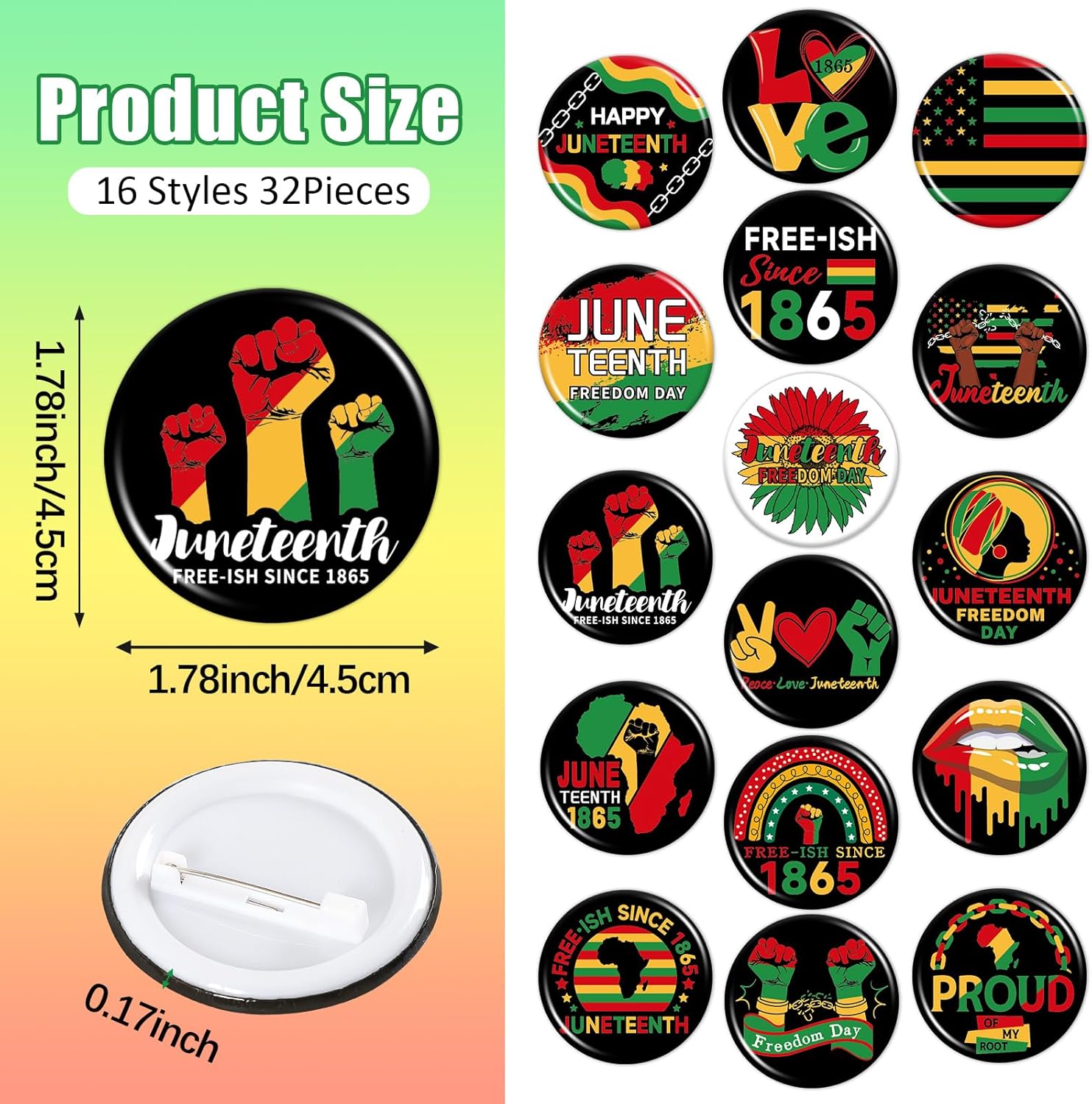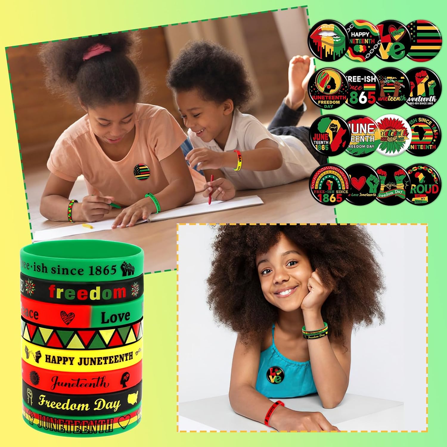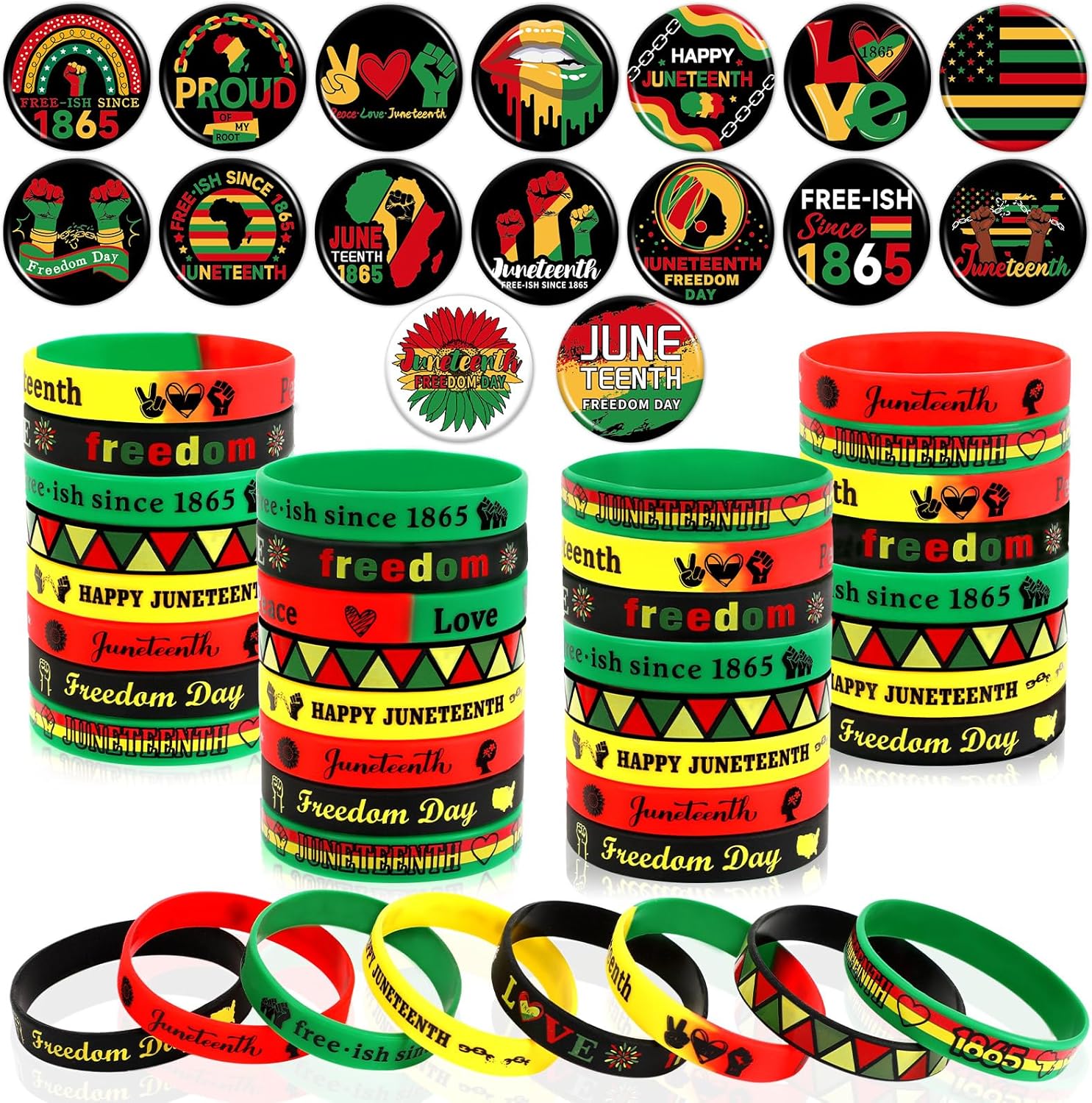 This 64-piece Juneteenth party favor set includes 32 silicone bracelets and 32 pins, featuring diverse designs and styles that celebrate the Juneteenth theme. Ideal for parties, events, and as gifts, it's a perfect way to showcase pride and support for freedom and cultural heritage.
