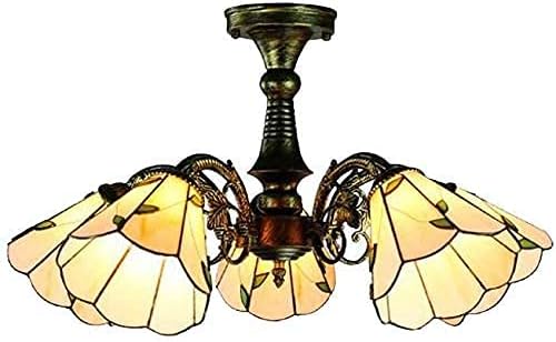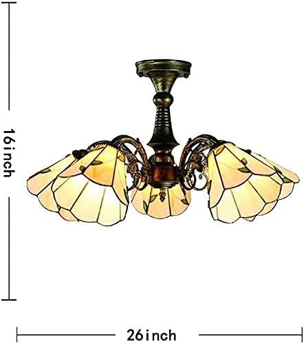 This Mediterranean Style Chandeliers features a stunning 5-head design, combining handcrafted stained glass shades with delicate green leaf patterns that add a touch of artistic elegance to your space. The chandelier measures 26 inches in diameter and 16 inches in total height, making it the perfect size to create a warm, romantic ambiance in your home.