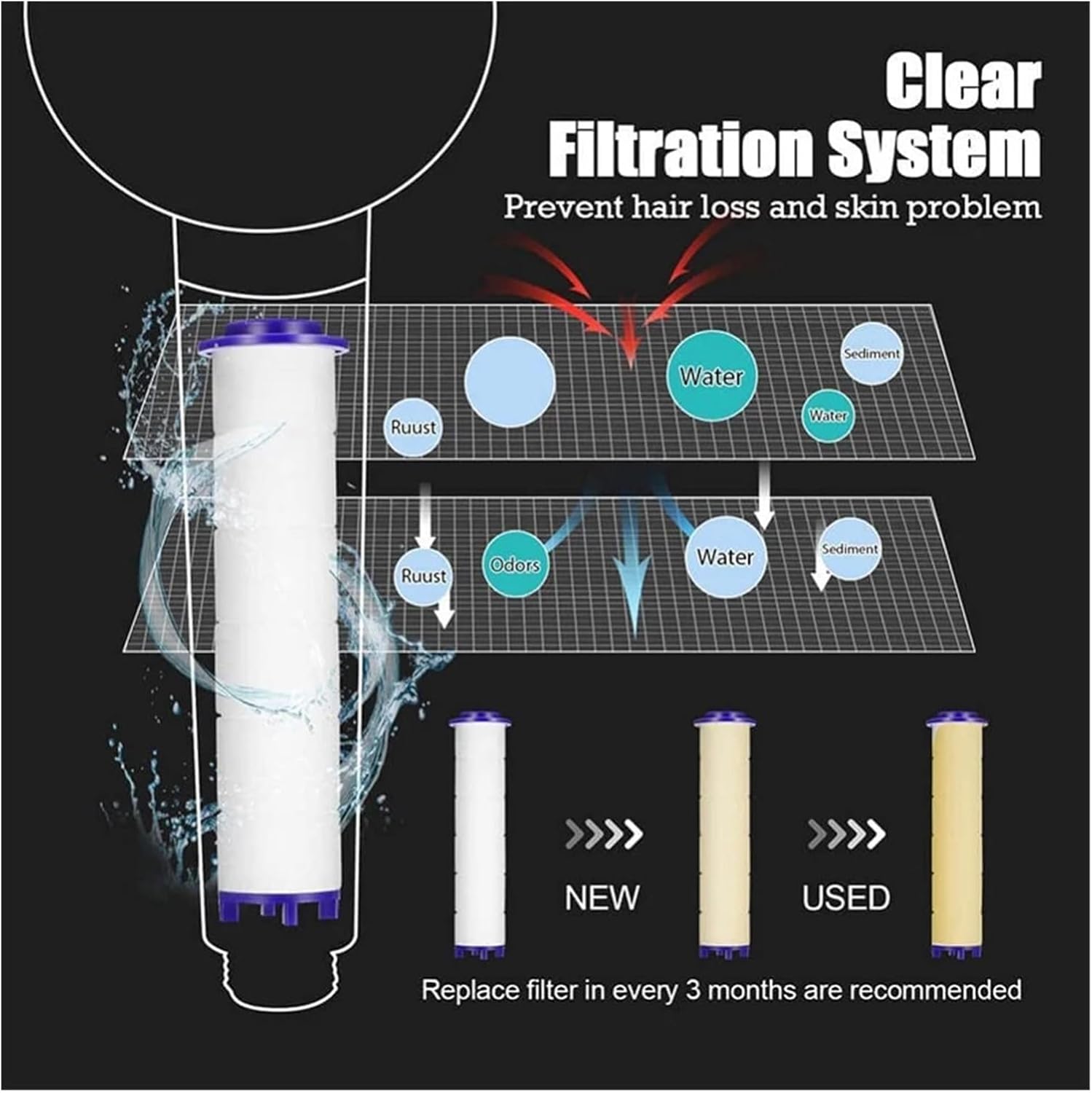 Experience a luxurious, refreshing shower with this NATTCO handheld showerhead. Designed to deliver a powerful and even spray, it covers your entire body, providing a soothing massage effect that promotes relaxation and wellness. The inclusion of 5 premium filters ensures that every drop of water is clean, pure, and free from impurities, making it especially ideal for those with sensitive skin.