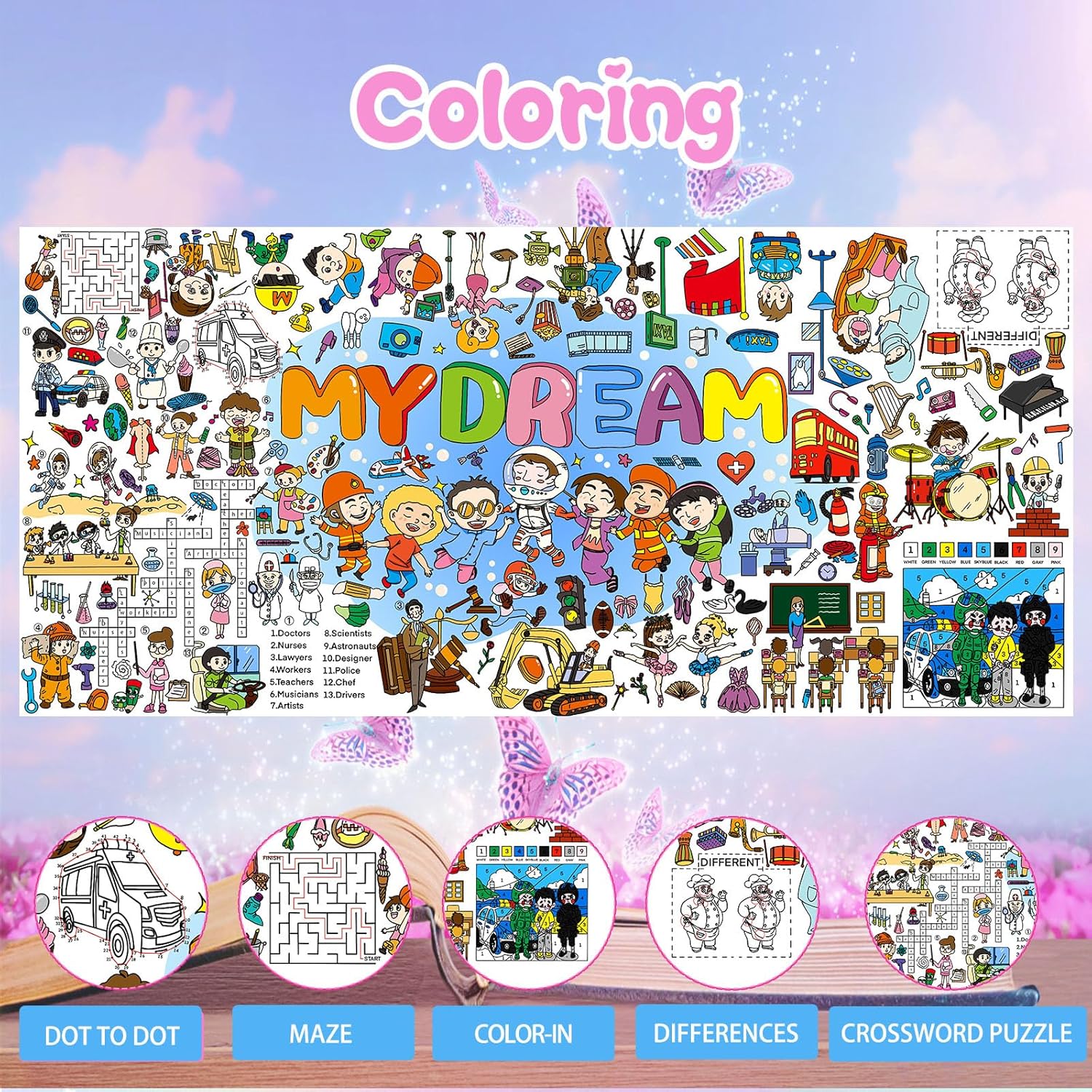 Featuring a collection of dream-themed careers like teachers, astronauts, and doctors, this poster turns coloring into a learning experience. Itâs designed to spark curiosity and inspire young minds through creative play.