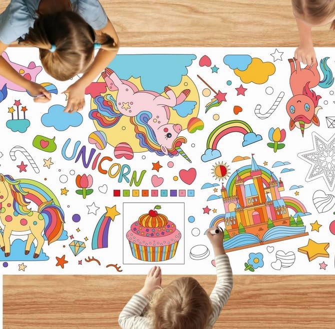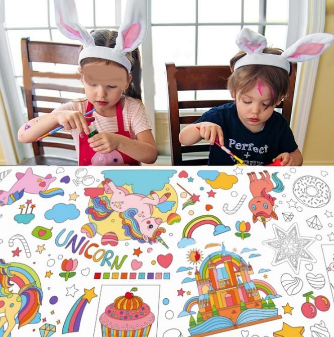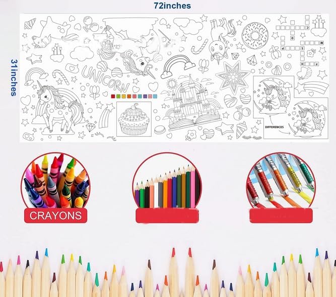 Made from durable, safe paper, this tablecloth is perfect for children to color and paint. Its large size, 72\"L x 31.5\"W, ensures full table coverage, making it ideal for both indoor and outdoor use. Whether it's a birthday party, classroom activity, or a family gathering, this whimsical design turns any event into a magical experience.