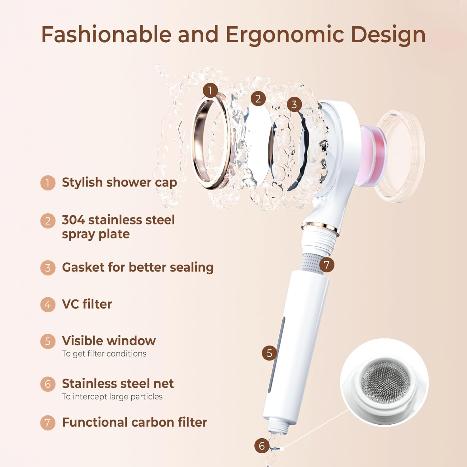 Our rose scented shower filter is more than just a water filterâit's an investment in your wellness. By removing harmful chlorine and impurities from your water, it helps maintain the natural health of your hair, skin, and nails. Whether you're at home or on the go, this product delivers a spa-like experience with every use, making your daily routine more enjoyable and beneficial.
